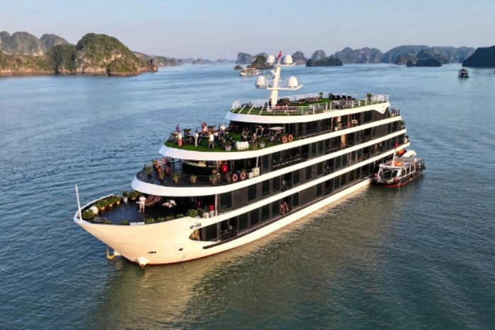 With the 4 star Velar of the Sea Ha Long Bay cruise, you can enjoy top-quality comfort and services: spacious cabins, delicious meals, and a variety of activities such as swimming, kayaking, exploring caves, or joining Vietnamese cooking demonstrations. You can also watch the sunrise and sunset from the deck, join friendly events like the Sunset Party, or simply relax with a cocktail while taking in the views.
