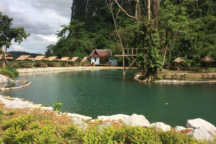 On your 3-day Vang Vieng tour, don’t miss the beautiful Blue Lagoon, a picturesque spot for swimming and relaxing.