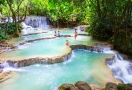 In the afternoon, venture through picturesque green rice paddies and charming farms. Upon reaching the enchanting Kuang Si waterfall, take a leisurely walk along the trail, allowing you to appreciate the cascading falls and the surrounding beauty. Don't miss the chance to visit the bear rescue center, where you can witness their conservation efforts. The park reveals a spectacular display of orchids, and the falls cascade over multiple calcified tiers, descending several hundred feet into a series of cool, turquoise pools. After relishing the awe-inspiring views, make your way back to Luang Prabang.