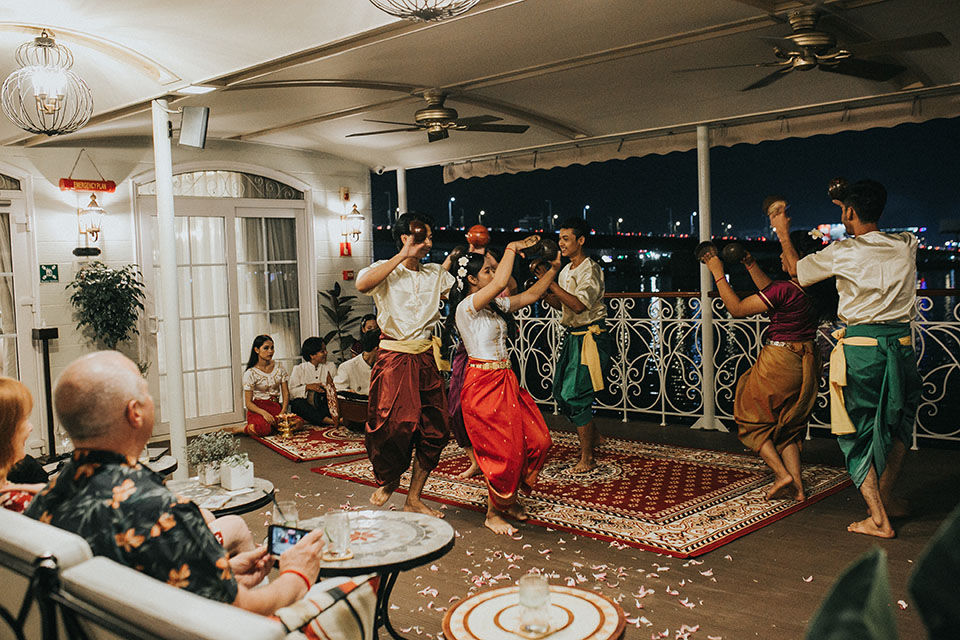 Return to the cruise and unwind with an enchanting traditional Apsara dance performance by a local group, immersing yourself in Cambodia’s rich cultural heritage.