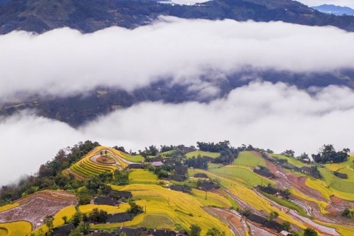 While hiking the mountain, you can admire the magnificent golden rice terraces during the ripe rice season, offering an absolutely breathtaking landscape. Here are some suggestions for choosing the right time to visit Chieu Lau Thi mountain: